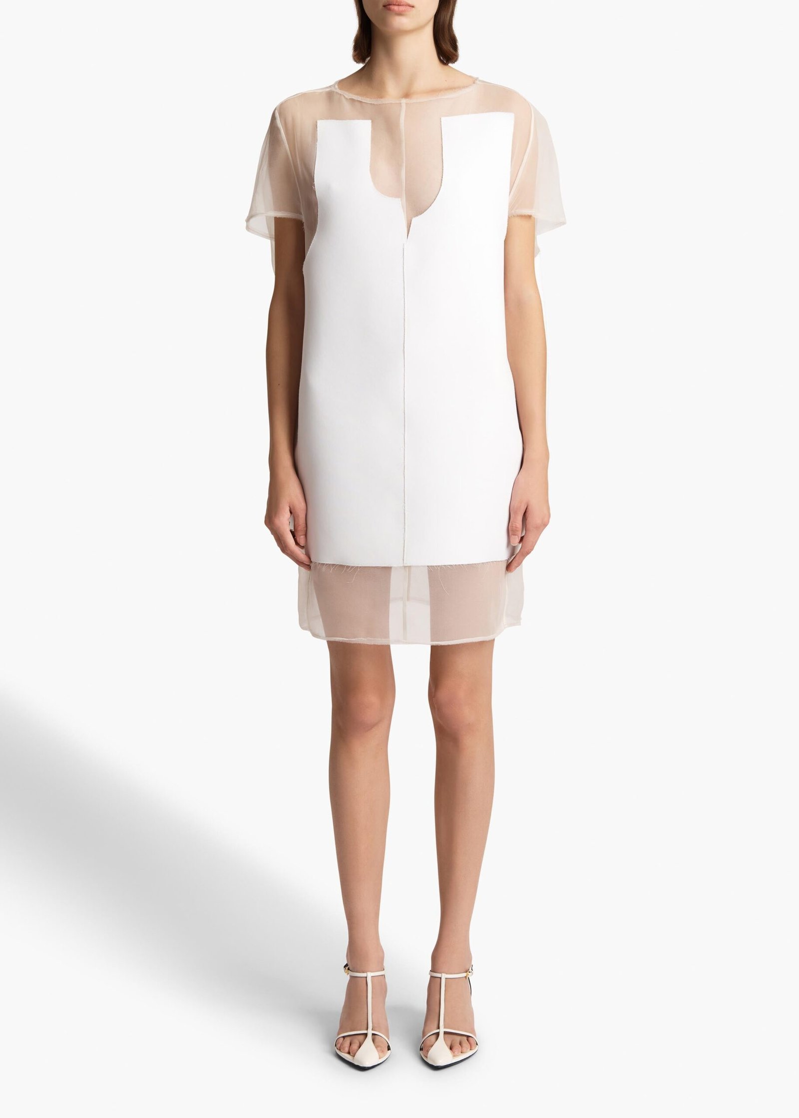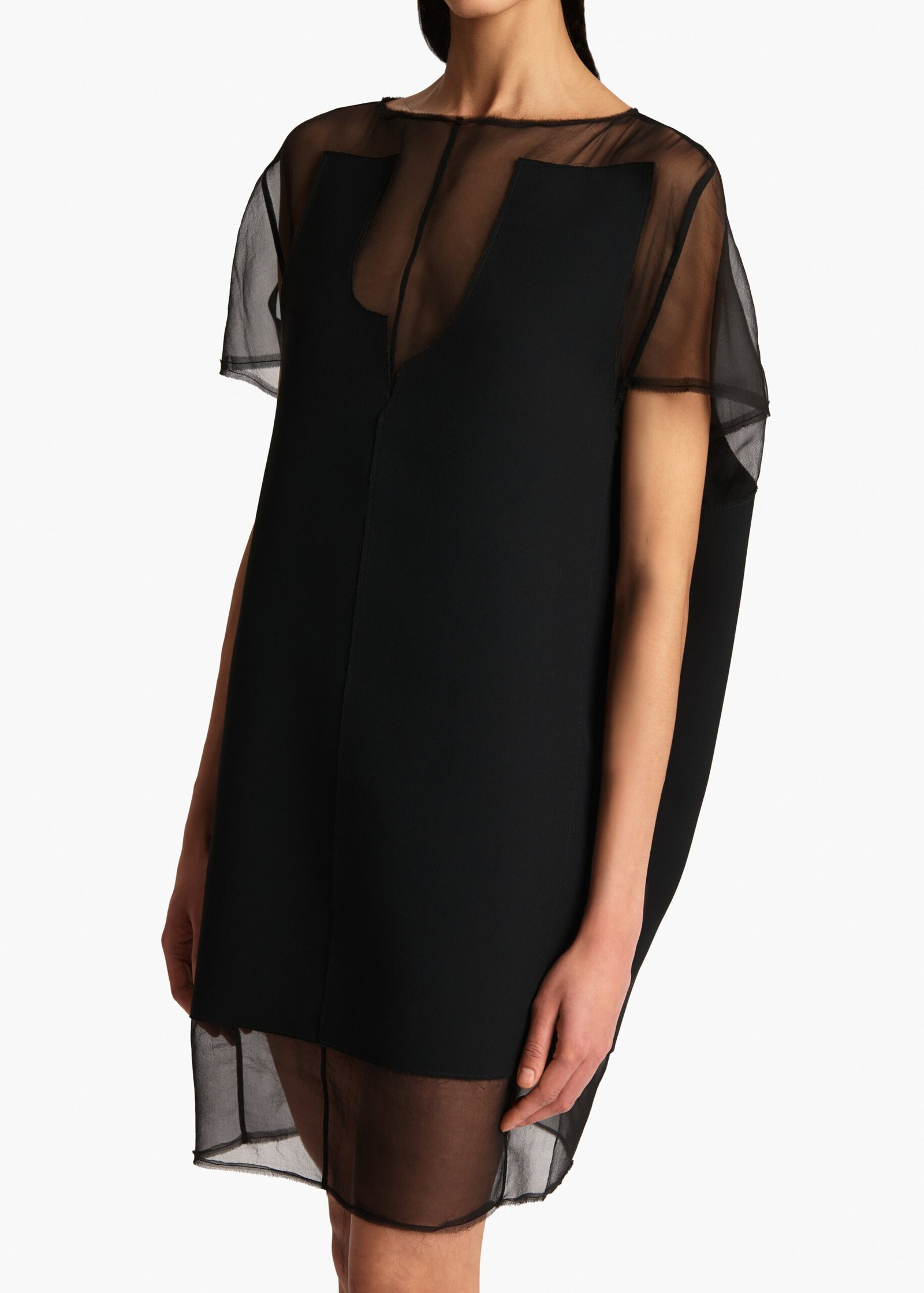 Khaite black and white mesh patchwork short dress