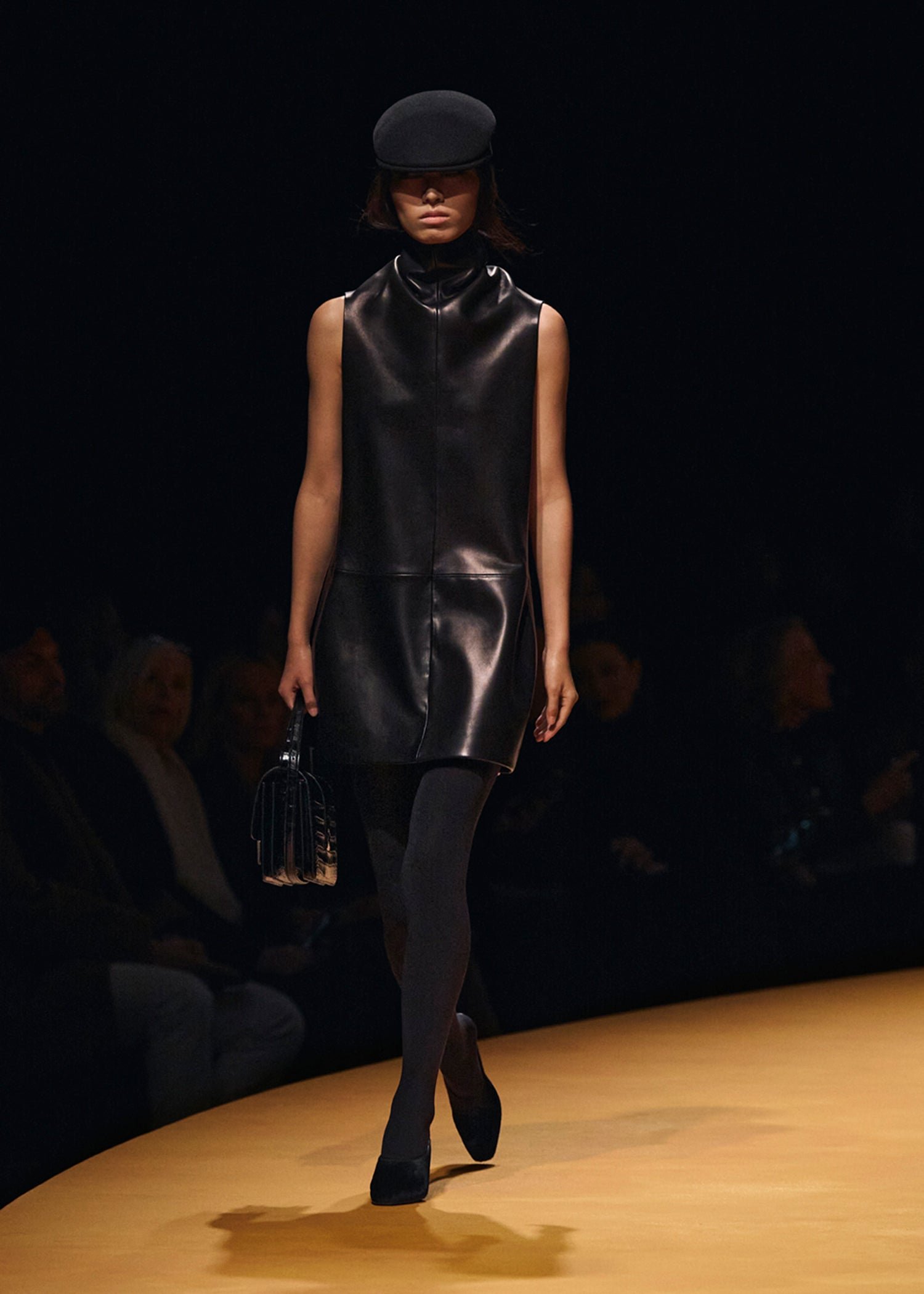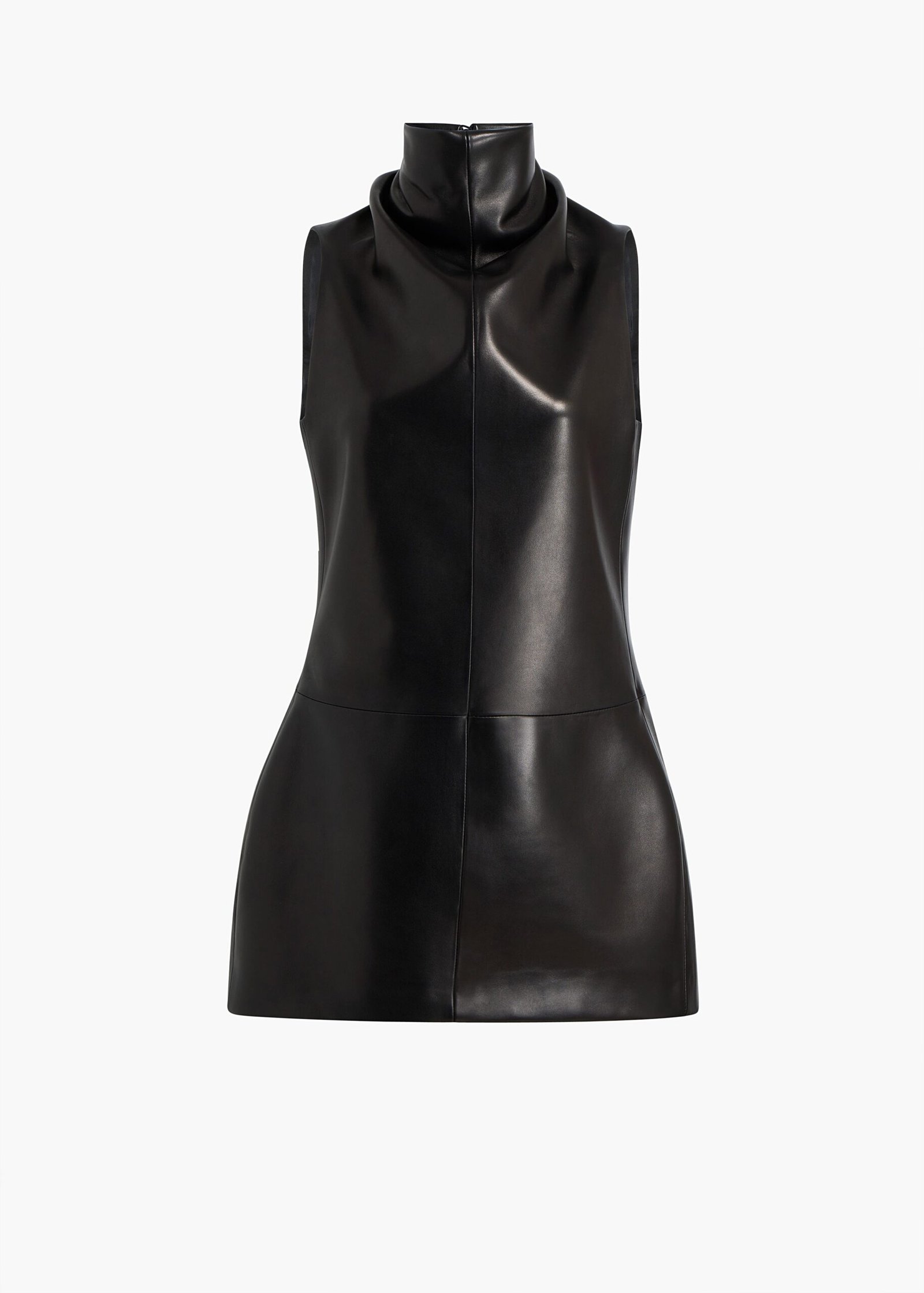 Khaite Black Leather High-Neck Short Dress