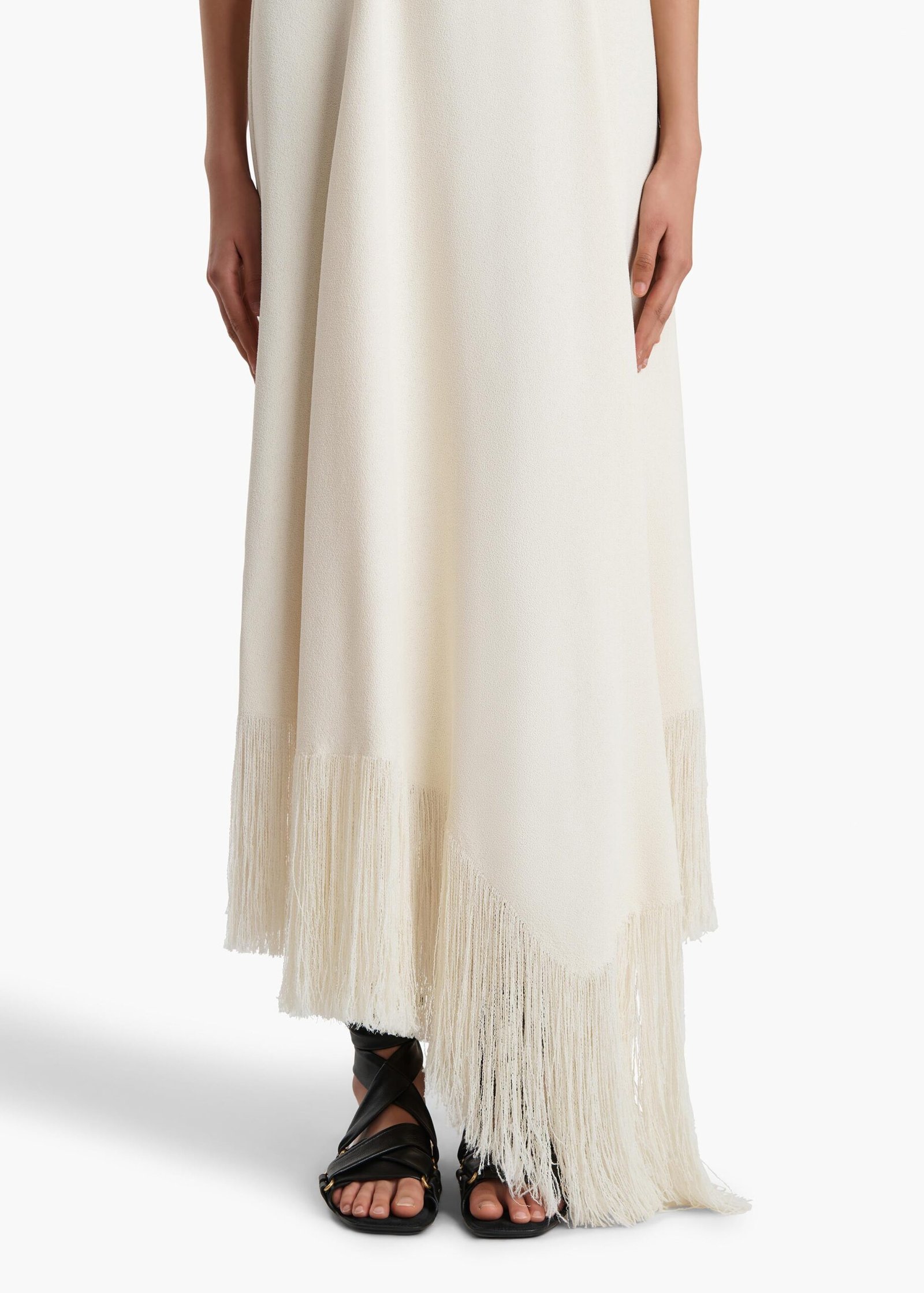 The stunning tassel design at the hem adds a touch of playfulness and flair, making it a standout feature of this dress. Perfectly balanced, this unique detail ensures both chic style and fluid movement with every step you take.